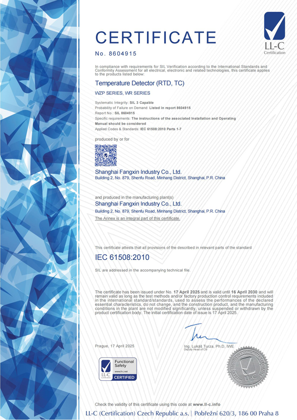 級(jí)精度產(chǎn)品制造計(jì)量許可證的極少數(shù)合法企業(yè)之一。并且率先采用了國際通用的分度號(hào)色標(biāo),從而使安裝在設(shè)備上的產(chǎn)品的分度號(hào)非常醒目,便于識(shí)別和更換,因此多年來受到熱工維檢人員的贊譽(yù)。